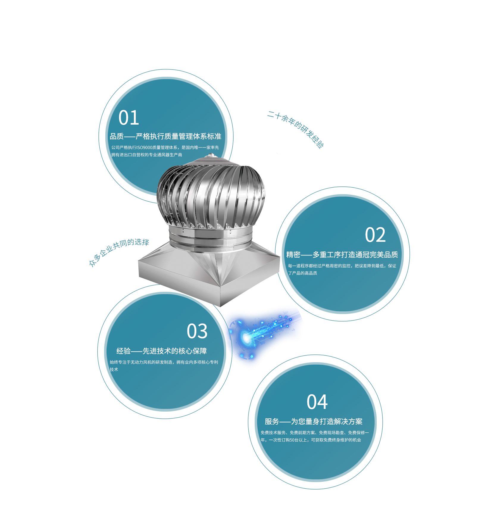 1、弧形風(fēng)葉是經(jīng)過科學(xué)的計(jì)算的最佳結(jié)果,能嚴(yán)格保證工作狀態(tài)無動(dòng)力風(fēng)機(jī) 下絕不會(huì)讓雨水侵入。排風(fēng)效率高,只...